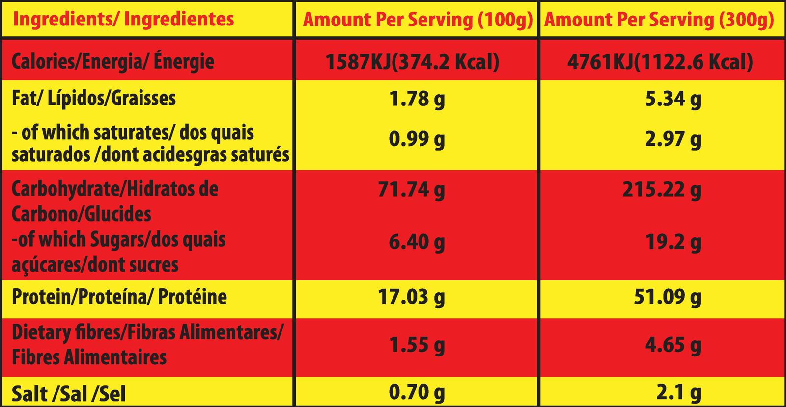 Maltodextrin, Whey protein concentrate, Flavor, Thickeners (Guar gum, Xanthan gum), Sodium chloride, Sweetener (Sucralose E955).